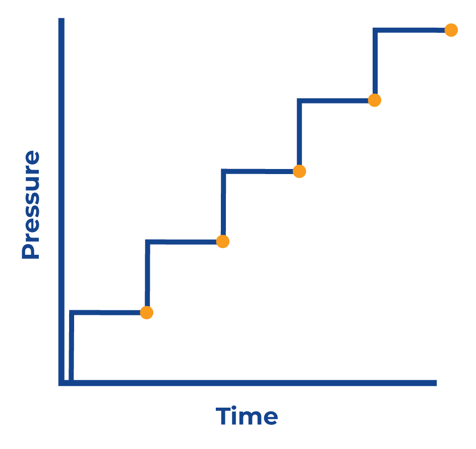 以稳定的速率增加压力可缩短测量时间,提供高重复性测量,并产生压力间隔紧密的数据点。