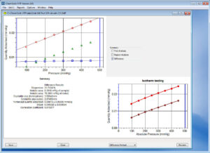 ChemiSorb HTP 是一种静态压力化学吸附分析仪。通常,在低于大气压的条件下收集两条吸附等温线(恒温下气体吸附量随压力变化的函数):第一条代表总吸附量,第二条代表可逆吸附量,两者的差值代表不可逆吸附量(即 “化学吸附”)。该技术可提供吸附位点数量的信息,进而可计算金属分散度百分比、活性金属表面积、活性颗粒尺寸以及催化剂材料的表面酸度。