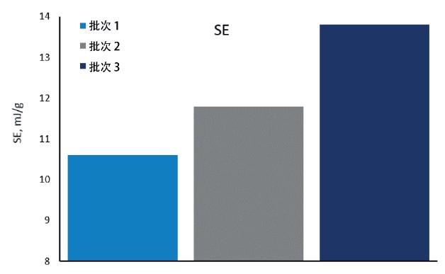 比能(SE)量化了粉体颗粒间的机械咬合和摩擦的程度。批次1的低比能(SE)值说明其颗粒被很好地分散且不容易粘结和团聚。