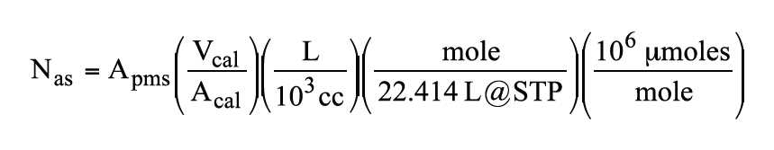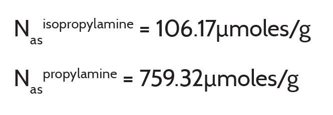 After obtaining the peak area by integration of the propylene signal from Figure 4, Apms, the acid site concentration, Nas, can be calculated as follows: