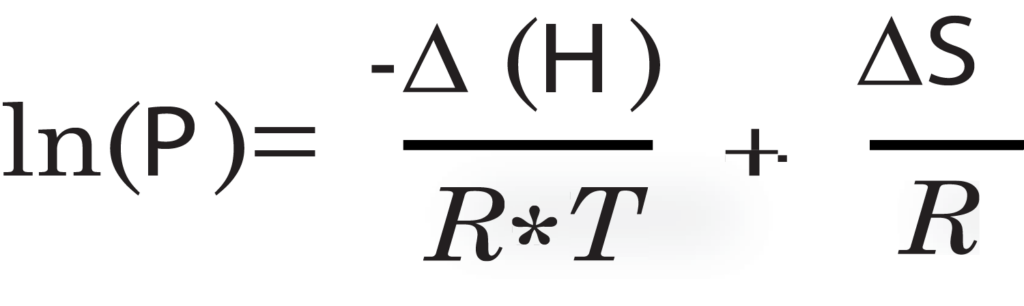 entropy of sorption in kJ/mol*K, P is the pressure in Torr, and R is the gas constant, 0.0083144 kJ/mol*K.