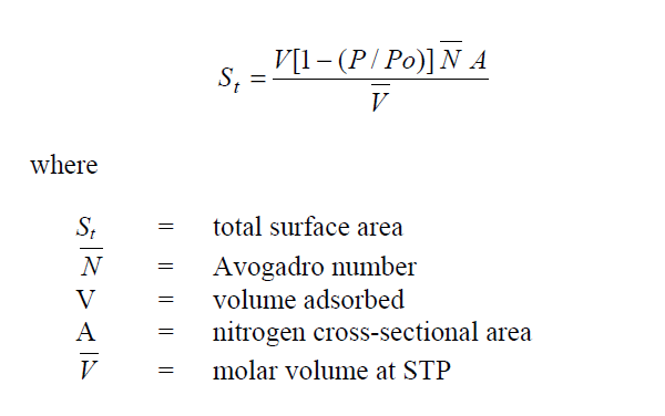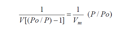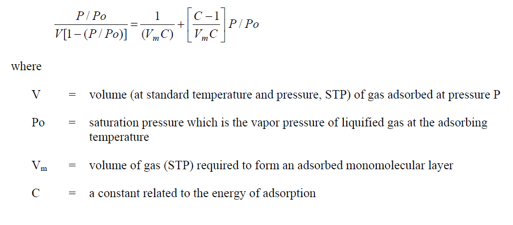 One form of the well-known BET equation that describes the adsorption of a gas upon a solid surface is: