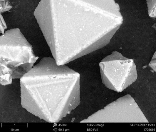 在 298K 的温度下,在同一 3Flex 仪器上,采用不同的压力表设置(P/P₀ = 0.001 – 0.90),同时进行两种材料的水蒸气吸附实验。HKUST-1 材料由 NuMat 科技公司的科学家提供。MIL-101 是作为礼物收到的,材料的结晶度由供应商确认。SEM 图像是在颗粒测试机构使用 Phenom ProX 台式扫描电镜获得的(图 5 和图 6)。样品在 170°C 下进行真空脱气过夜。HKUST-1 和 MIL-101 的 BET 比表面积分别为 1574 m²/g 和 1379 m²/g。图 1 中低 P/P₀区域的陡峭吸附和随后的氮气吸附等温线表明了 HKUST-1 的微孔性。图 3 中 HKUST-1 的氮气等温线对数图表现出阶跃特征,显示了 HKUST-1 与具有强四极性气体分子间的相互作用 ¹²,¹³。而图 2 的氮气吸附等温线表明,MIL-101 中存在两种类型的介孔,内径分别接近 2.9 nm 和 3.4 nm⁹。